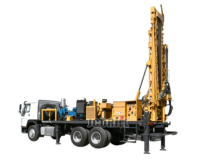 CSD800 truck mounted water well drilling rig mainly applicable to all kinds of drilling process of wells, monitor boreholes, geothermal boreholes, and grouting holes of cofferdam, dam and reinforced base, as well as drilling of open pit mining, anchor reinforcement project and defense project.